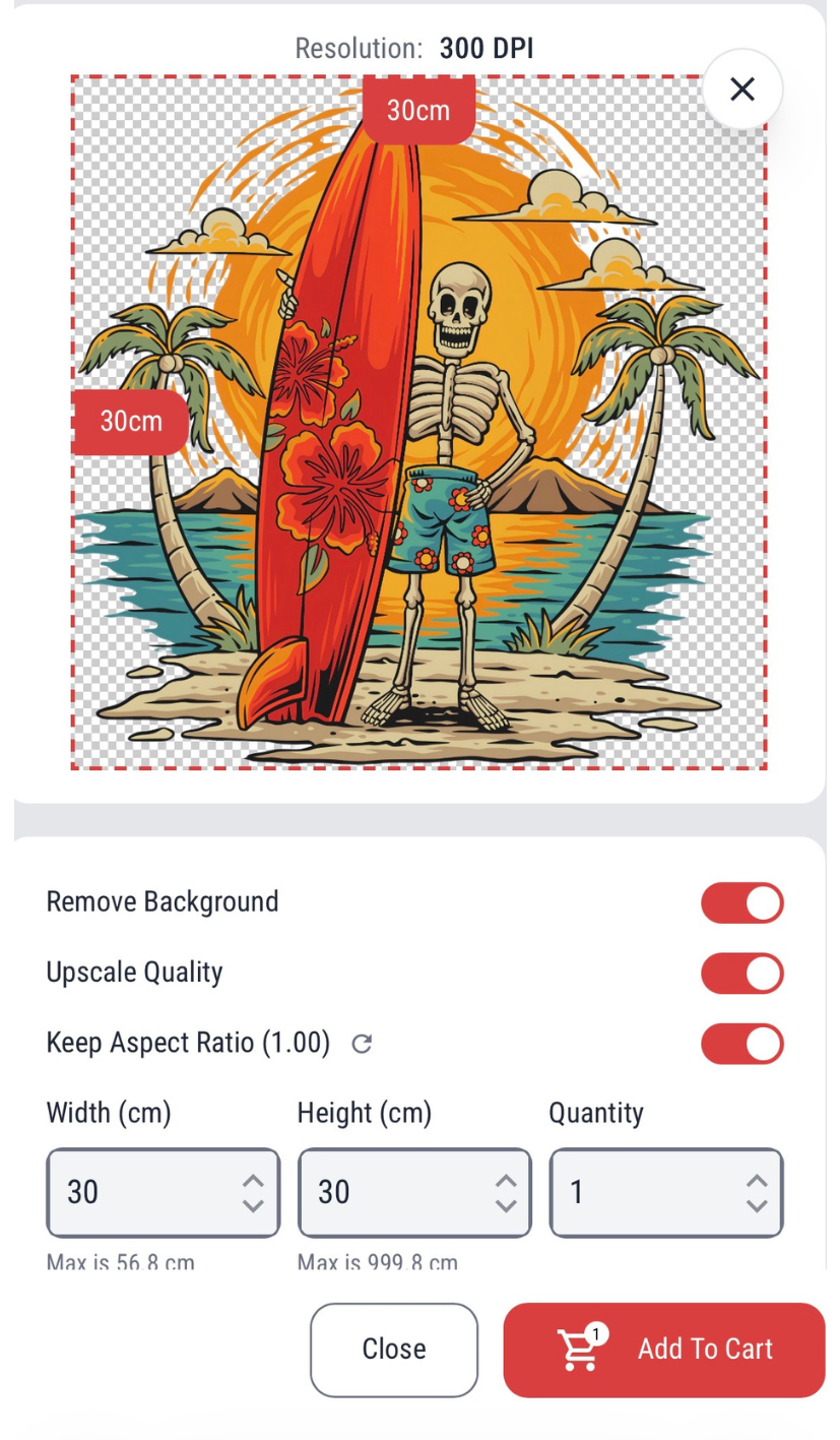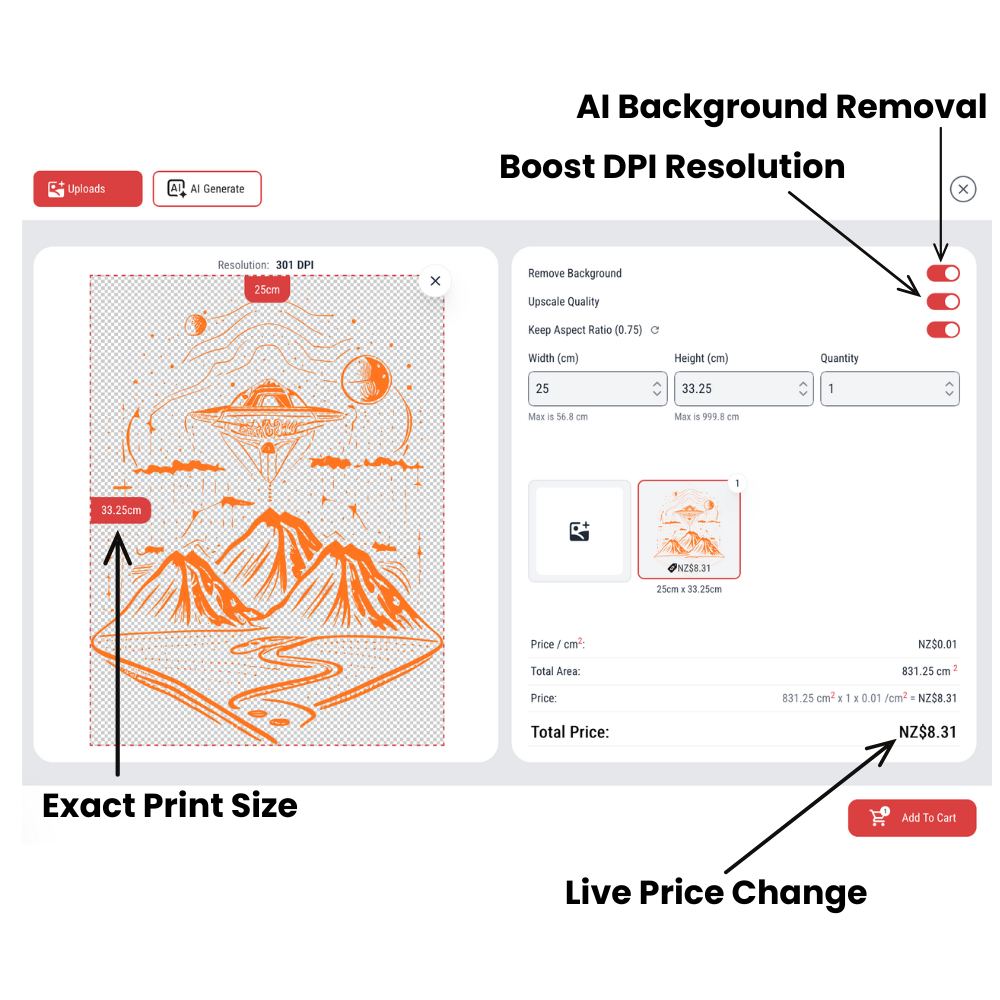 With our new Size-by-Image feature, you can upload your artwork, set your exact print size, and see a live preview before placing your order.